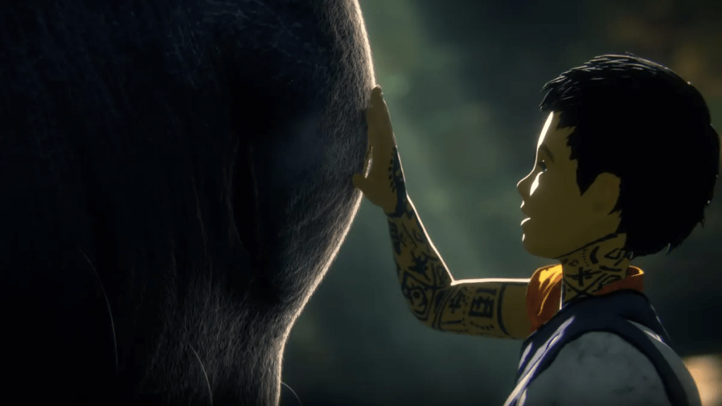 La historia de The Last Guardian se presenta sin artificios ni introducciones extensas. Un niño despierta en un lugar desconocido, cubierto de misteriosos tatuajes, y se encuentra con Trico, una enorme criatura mitad gato, mitad ave. Lo que comienza como una relación de desconfianza se convierte poco a poco en una alianza indispensable para sobrevivir y escapar de un vasto complejo de ruinas. La narrativa se apoya en la interacción constante entre ambos, desarrollando un vínculo que evoluciona sin necesidad de diálogos extensos ni explicaciones directas.