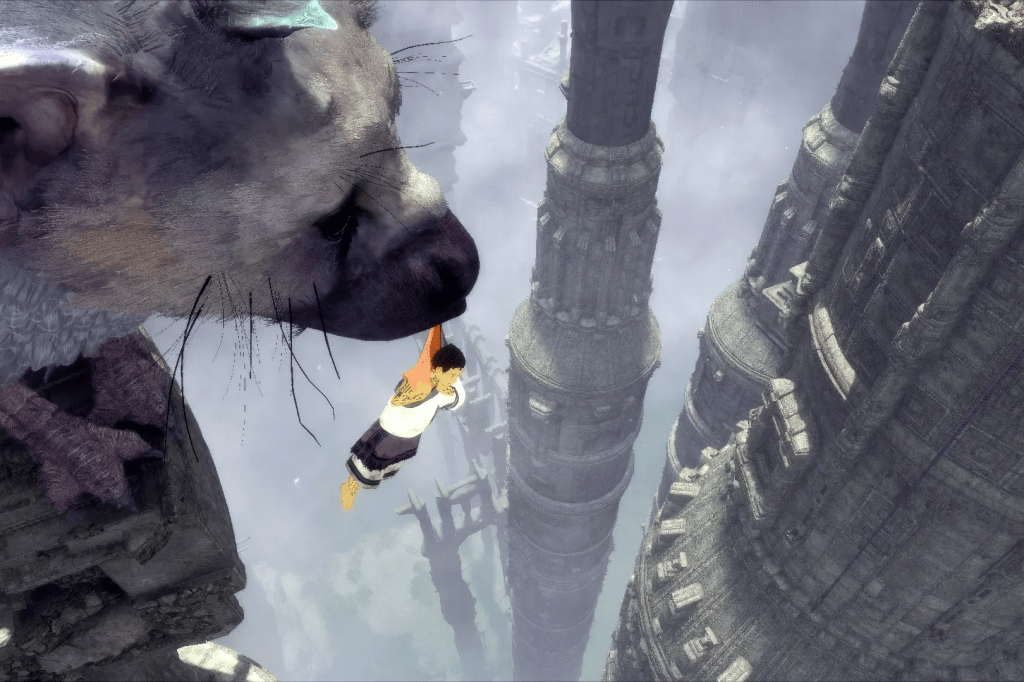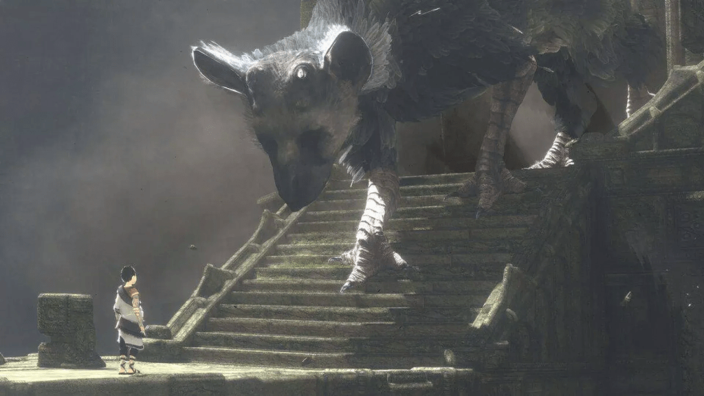 El diseño de Trico es, sin duda, uno de los mayores logros gráficos del juego. Su animación, sus movimientos y la forma en la que reacciona al entorno son impresionantes, otorgándole una presencia real y tangible. Cada pluma, cada respiración y cada mirada del animal refuerzan la ilusión de estar frente a un ser vivo. En contraste, algunos detalles técnicos, como las texturas del entorno o la tasa de fotogramas, evidencian las limitaciones del motor gráfico. Aun así, la dirección artística logra imponerse sobre los defectos técnicos, ofreciendo un mundo coherente, inmersivo y emocionalmente potente.