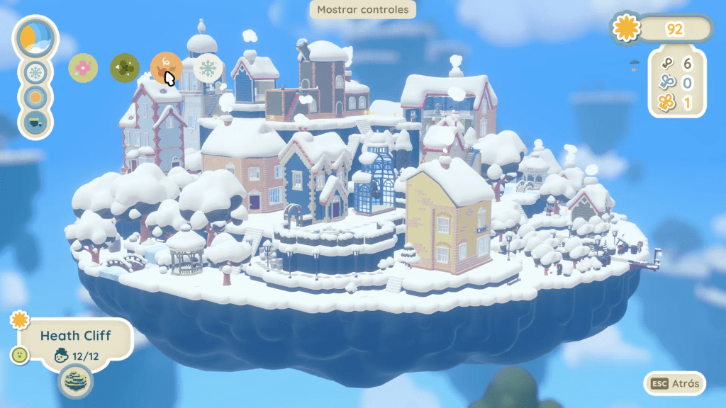 Nos ha parecido que Twinkleby consigue un equilibrio genial entre lo accesible y lo “quiero dominar esto”. Cualquier persona puede empezar a colocar casas, árboles y faroles sin sudar, pero al rato te ves pensando en “que este vecino raro venga solo si tengo estas condiciones… ¿lo lograré?” o “voy a cambiar la estación a invierno para ver cómo queda con luces tenues y lanzar una estrella fugaz”. En ese sentido, la dificultad o el reto no están en que algo te mate o te atrape, sino en que tu creatividad no se estanque. Hay cierta repetición, sí, es decir “voy a decorar otra isla” puede sonar a “otra vez lo mismo”, pero la variedad de objetos, las estaciones, los vecinos raros, esa mecánica de expulsiones absurdas, todo eso ayuda a que no se sienta monótono. Y sinceramente, nos hemos reído varias veces cuando un mueble perdió la gravedad y salió volando al espacio… porque sí. En resumen, la jugabilidad de Twinkleby es divertida, relajada, pero también con sustancia para los que quieren profundizar. Y eso lo convierte en un juego muy recomendado para esas tardes tranquilas.