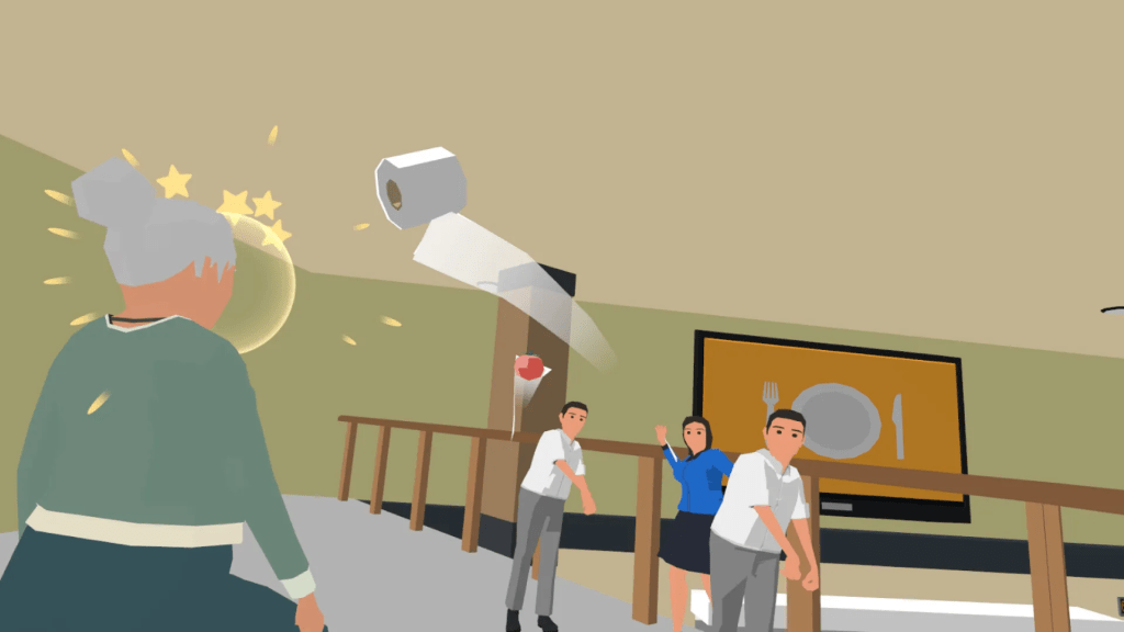 En cuanto a los gráficos, Ultimate Grandma Simulator adopta un estilo caricaturesco y exagerado que encaja perfectamente con su tono cómico. Los modelos de personajes y objetos son simples pero expresivos, permitiendo que las acciones y reacciones de la abuela sean claramente visibles y graciosas. Nos ha gustado especialmente el diseño de los escenarios, que aunque sencillos, están llenos de detalles interactivos y objetos que invitan a la experimentación. Creemos que este estilo visual ayuda a que el caos del juego sea comprensible y entretenido, evitando la confusión que podría generar un realismo excesivo en un entorno tan caótico.