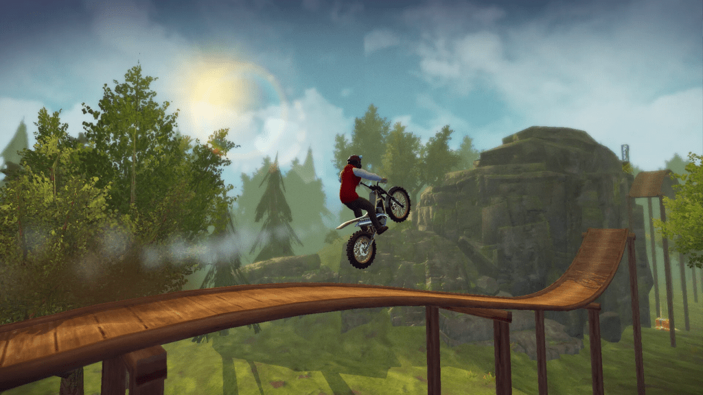 A nivel gráfico, Stunt Bike Extreme apuesta por un estilo limpio y funcional, sin grandes alardes técnicos, pero con una dirección artística coherente. Los escenarios están diseñados para servir al gameplay, no para deslumbrar visualmente, y creemos que eso es una decisión acertada. No hay distracciones innecesarias, y todo lo que ves en pantalla tiene un propósito claro: hacerte la vida más difícil. Los circuitos están llenos de rampas, plataformas, troncos y estructuras que parecen colocadas con mala intención, y eso es justo lo que esperamos.