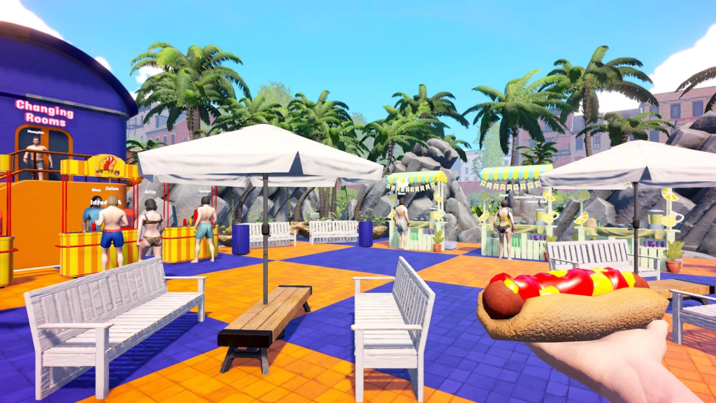 La ambientación está muy bien conseguida. El uso de colores vivos, la iluminación y el diseño de los espacios transmiten perfectamente esa sensación de día de verano en un parque acuático. Creemos que el juego logra que el parque se sienta como un lugar vivo, incluso cuando las instalaciones todavía son modestas.