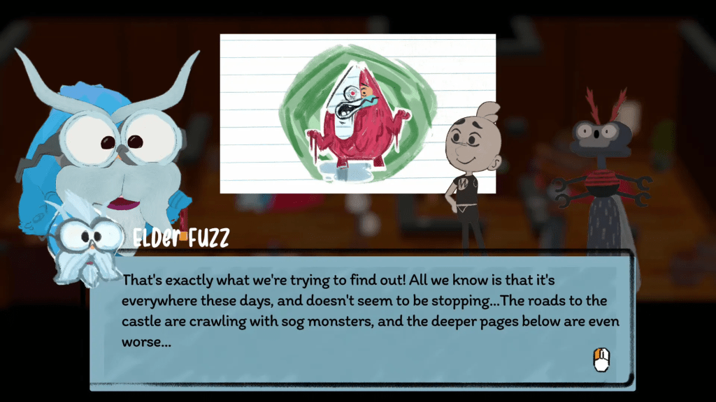 Nos ha divertido especialmente escuchar los sonidos pegajosos del Sog, que logran ser tan irritantes como graciosos al mismo tiempo. Cada habilidad especial tiene un sonido distintivo que hace que lanzar ataques se sienta gratificante, como si dibujar un trazo perfecto en el cuaderno se tradujera en un pequeño aplauso sonoro.