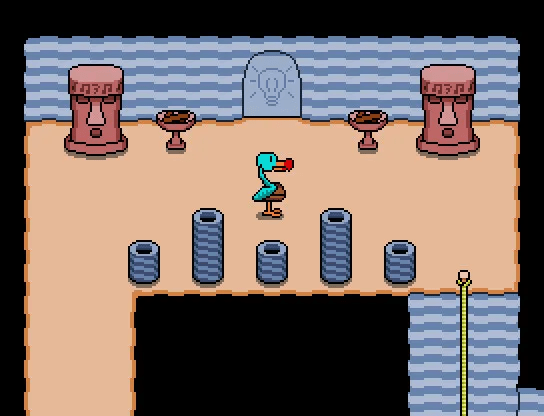 Visualmente, Jimmy and the Pulsating Mass es una auténtica carta de amor al pixel art. El estilo gráfico recuerda claramente a los RPGs de la era Super Nintendo, con sprites detallados, escenarios coloridos y una animación muy cuidada. Sin embargo, no se limita a copiar ese estilo, sino que lo utiliza para crear imágenes que, en muchos casos, resultan inquietantes y hasta perturbadoras. Nos ha gustado mucho cómo el juego juega con el contraste entre lo adorable y lo perturbador, usando colores vivos para representar situaciones que no siempre son tan alegres como parecen.