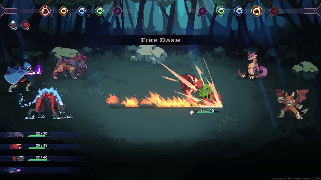 La jugabilidad es, sin duda, el apartado más importante del juego y donde más tiempo hemos pasado pensando, probando y, en ocasiones, lamentándonos de decisiones pasadas. El sistema de combate por turnos se basa en la invocación y gestión de espíritus elementales, cada uno con habilidades, sinergias y debilidades propias. No se trata solo de atacar y esperar, sino de entender cómo interactúan los elementos entre sí y cómo posicionarse para sacar ventaja. Nos ha gustado especialmente cómo el juego anima a pensar cada turno, sin llegar a ser desesperadamente lento.