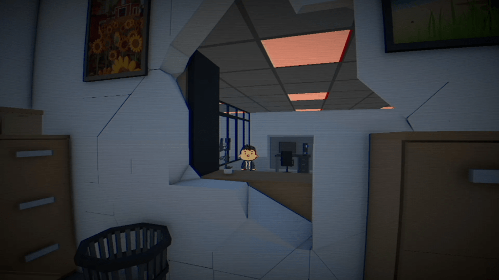 Visualmente, Drywall Eating Simulator apuesta por un estilo sencillo, casi austero, que encaja perfectamente con su propuesta. Los escenarios son mayoritariamente interiores, con texturas simples y una paleta de colores apagada que refuerza la sensación de monotonía y encierro. No hay alardes técnicos ni efectos llamativos, pero creemos que eso juega a favor del juego, ya que cualquier exceso visual rompería la atmósfera que intenta construir. Todo se siente ligeramente sucio, desgastado y poco acogedor, como si el propio entorno estuviera cansado de existir.