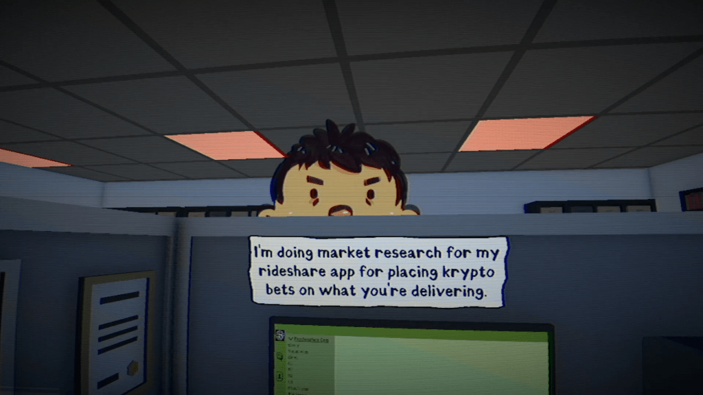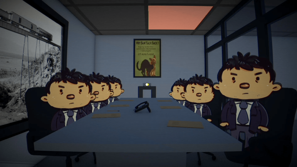 La forma en la que se cuenta esta historia es deliberadamente vaga, y creemos que eso juega tanto a favor como en contra. Por un lado, nos ha gustado que el juego confíe en el jugador para atar cabos y sacar sus propias conclusiones, sin subrayar nada ni explicarlo todo con carteles luminosos. Por otro, hay momentos en los que esa ambigüedad puede parecer más una excusa que una decisión narrativa sólida. Aun así, la sensación general es que hay un trasfondo que va más allá del chiste inicial, y que quien esté dispuesto a prestar atención encontrará algo más que una simple sucesión de situaciones grotescas. La duración de esta experiencia no es especialmente larga, pero creemos que está bien medida para no agotar su idea principal. Además, su estructura invita a repetirla, ya sea para descubrir detalles que se pasaron por alto o simplemente para confirmar que, efectivamente, acabamos de jugar a algo muy raro.