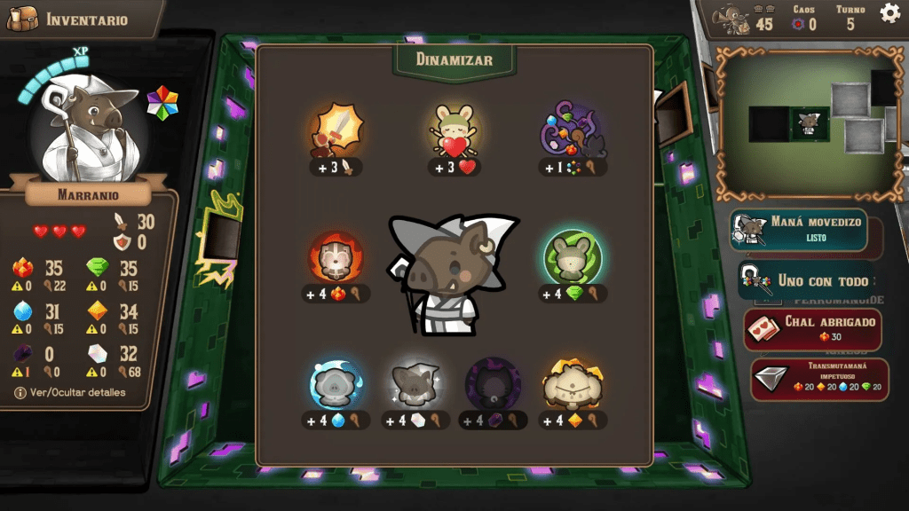 El sonido complementa la experiencia de manera efectiva. La banda sonora es ligera y mágica, adecuada para un juego de puzzle y combates tácticos. Nos ha gustado cómo los efectos de sonido, como el choque de elementos mágicos, los pasos sobre pisos pegajosos o el rugido de criaturas extraplanares, refuerzan la inmersión y hacen que cada sala se sienta viva.