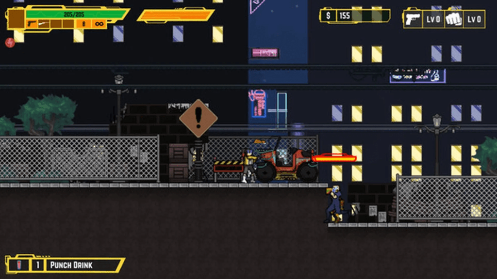 Los gráficos de Bail Force tienen un estilo pixel-art vibrante, saturado de neones y detalles que evocan perfectamente un futuro distópico cyberpunk. Nos ha gustado la claridad visual en medio del caos: a pesar de la densidad de efectos y enemigos, siempre podemos identificar lo que está ocurriendo y planear nuestro siguiente movimiento. La animación es fluida, con golpes, saltos y habilidades que se sienten contundentes, y la dirección artística logra transmitir tanto la decadencia de la ciudad como la energía frenética del combate.